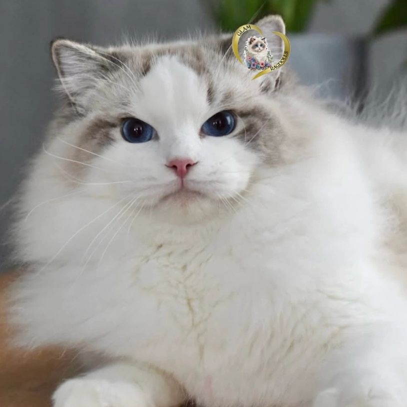 TEMPERAMENT: This gentle giant was already over 14 lbs by the age of 1! He is sweet, social, friendly and floppy. He has lovely deep blue eyes and a wonderful sweet expression. He has a soft voice and loves to chat. He gets along well with other cats as well as our dog.